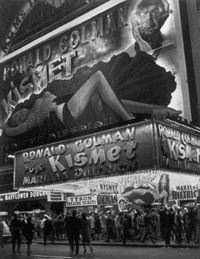 Huge billboard depicting Marlene Dietrich in Kismet, over Astor Movie Theater Marquee, Times Square