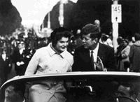 : Senator John F. Kennedy campaigning with his wife in Boston
